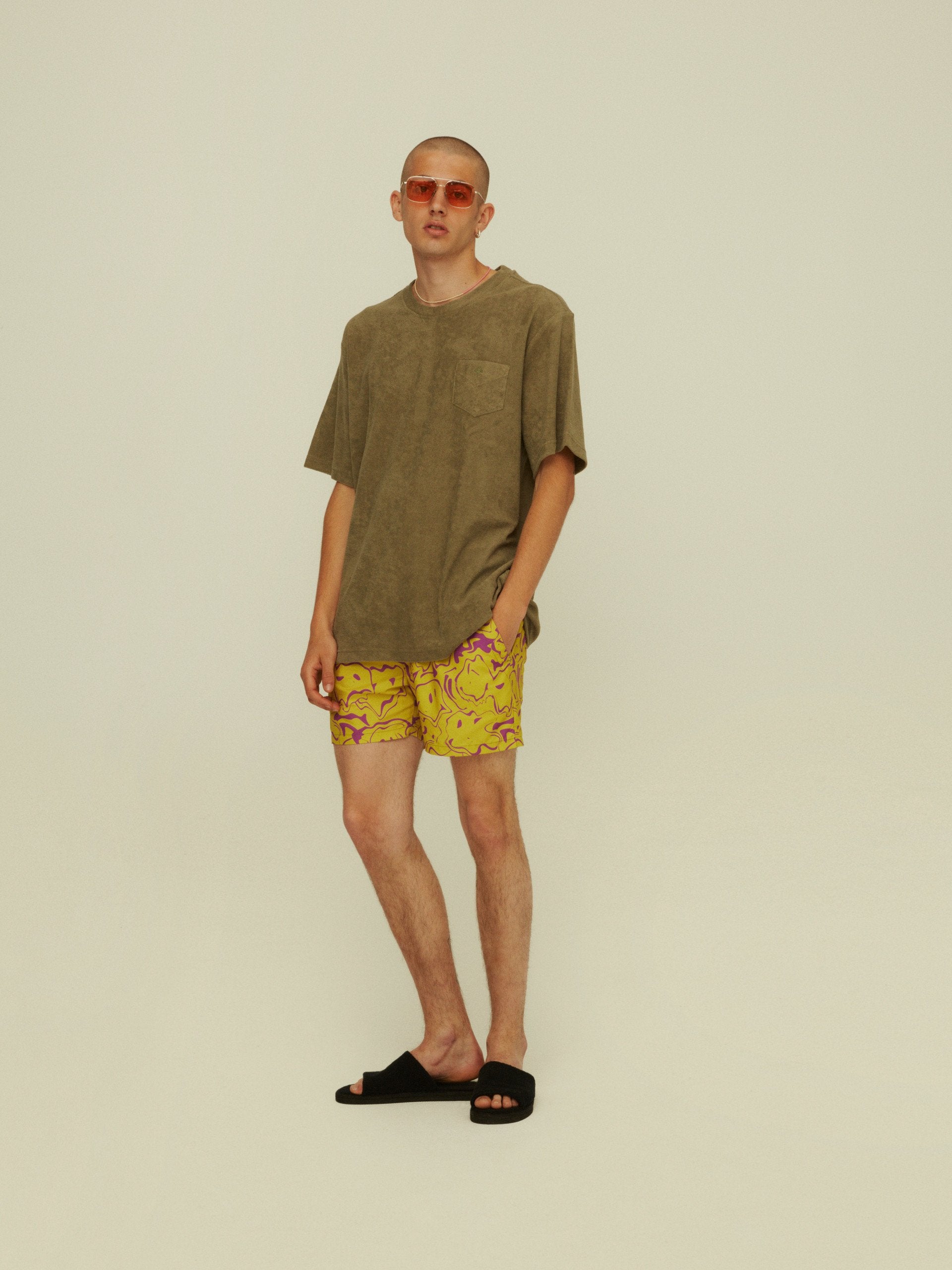 매우 부드럽고 두꺼운 면 100% 빗질된 테리타월 면으로 이루어진 테리 티셔츠. 일반적인 타월소재에 비해서 신축성이 좋고, 조직이 더 치밀하여 굉장히 부드러우며 피부에 닿았을때 정말 부드럽고 물 흡수력이 뛰어납니다. 터치감이 매우 좋기 때문에 신생아, 유아용 제품 패브릭으로도 많이 사용되는 소재입니다. 해변, 바다 그리고 여름나라 휴양지에서 OAS 특유의 강한 패턴과 컬러감으로 당신의 패셔너블한 리조트 룩을 연출해보세요. 데일리하게 위트있게 스타일링하기 좋은 티셔츠 아이템입니다.