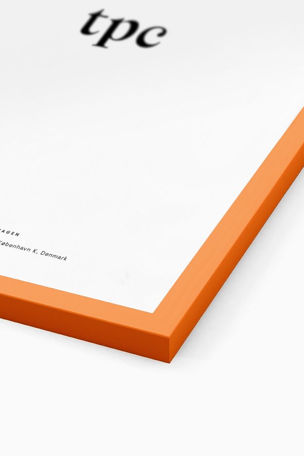 Thin Orange Wood Frame made in Denmark, with real glass. This solid wood frame will give your posters and art prints a beautiful Scandinavian and minimalistic look.