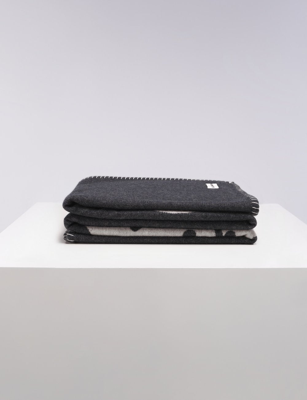Pure virgin wool blanket jacquard woven, refined with “Punto cavallo”.