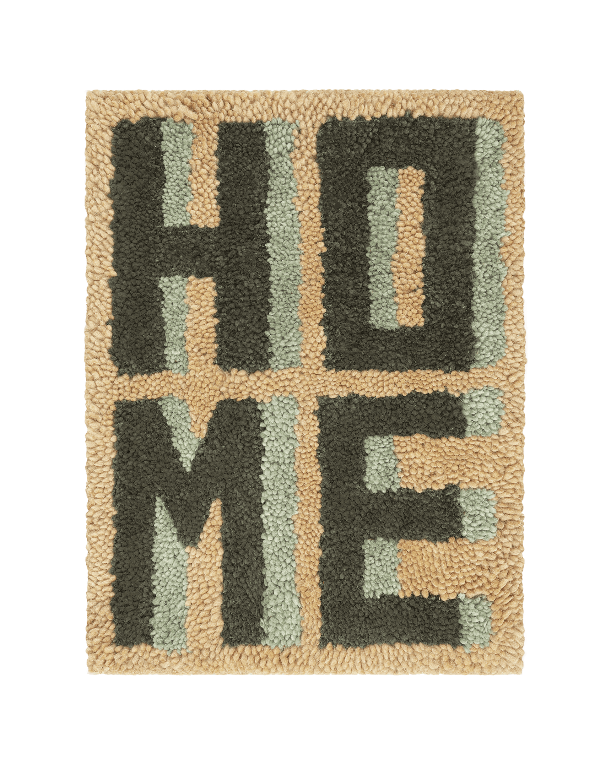 The 4 letter wall rug with the word HOME is hand-tufted in 100% wool. The handmade quality and the Indian craftsmanship ensure stylish rugs, that'll catch the eye. Use the HOME rug anywhere in you home, where you need a soft and tactile supplement to the decoration. The 4 letter rug comes with a hanger on the back for easy displaying.