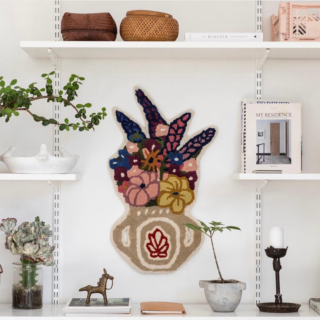The Bongusta Flower vase wall rugs are hand-tufted in India using 100% wool. The handmade quality of the decorative rugs means they’ll make a stylish addition to the wall. The rug work well in a mix with art pieces, posters and paintings on a gallery wall – or anywhere you need a soft and tactile supplement to the decoration. The Flower vase rug comes with a hanger on the back for easy displaying.