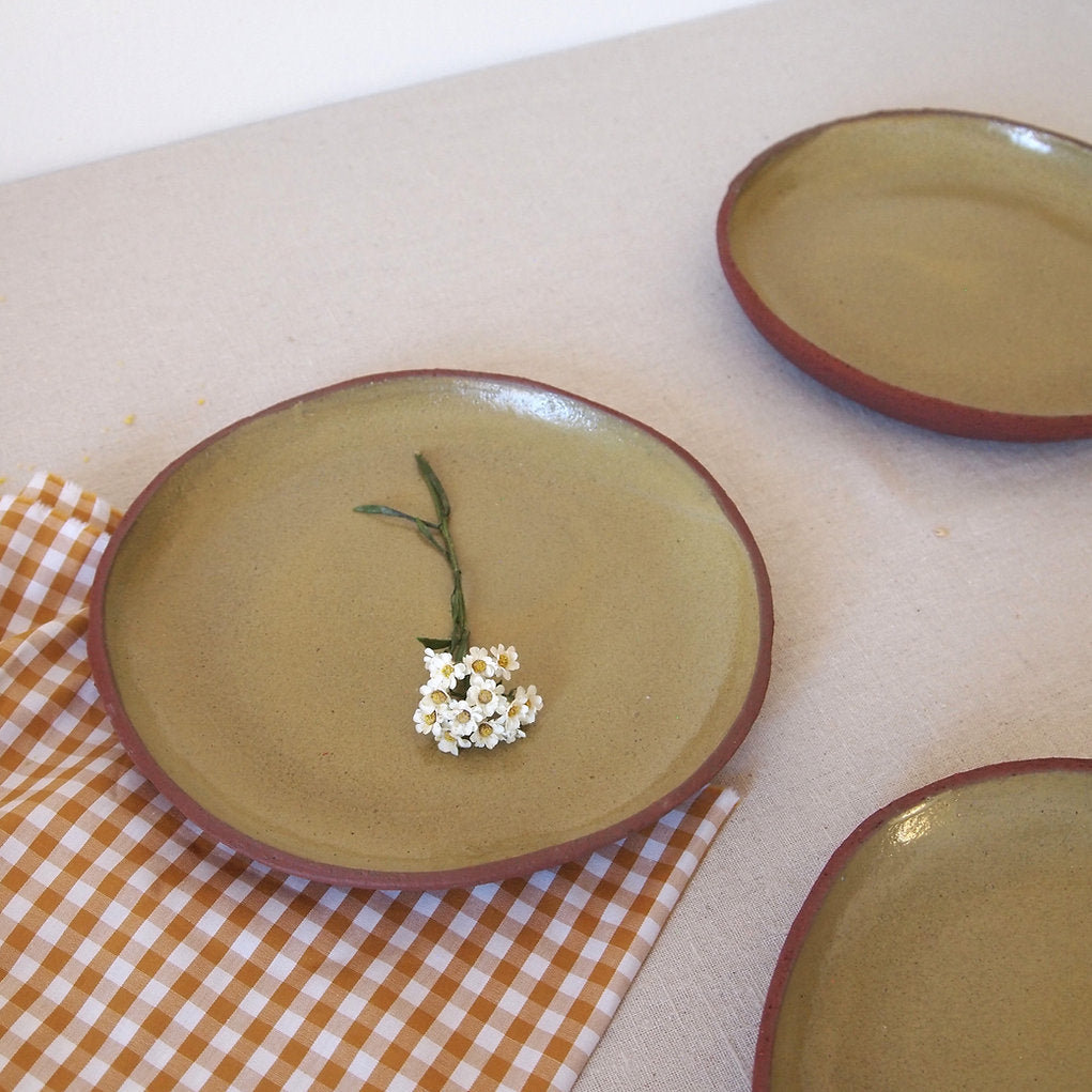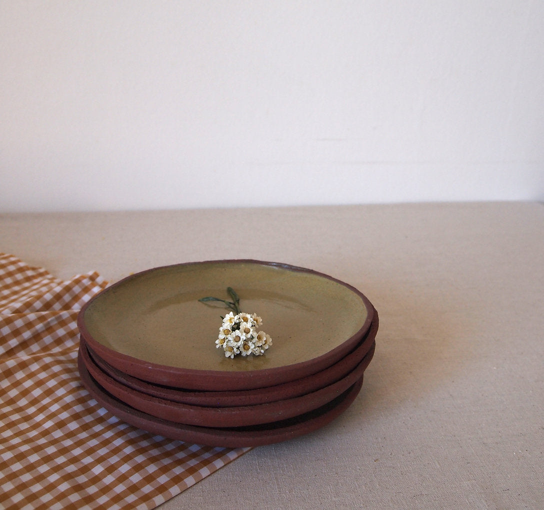 모델링 기법으로 붉은 사암으로 만듭니다. 각 그릇은 독특하고 완전히 핸드메이드 수작업으로 만들어지기 때문에 시각적으로 약간 다를 수 있습니다. 접시는 전체적으로 올리브 그린으로 에나멜 처리되어 있습니다.