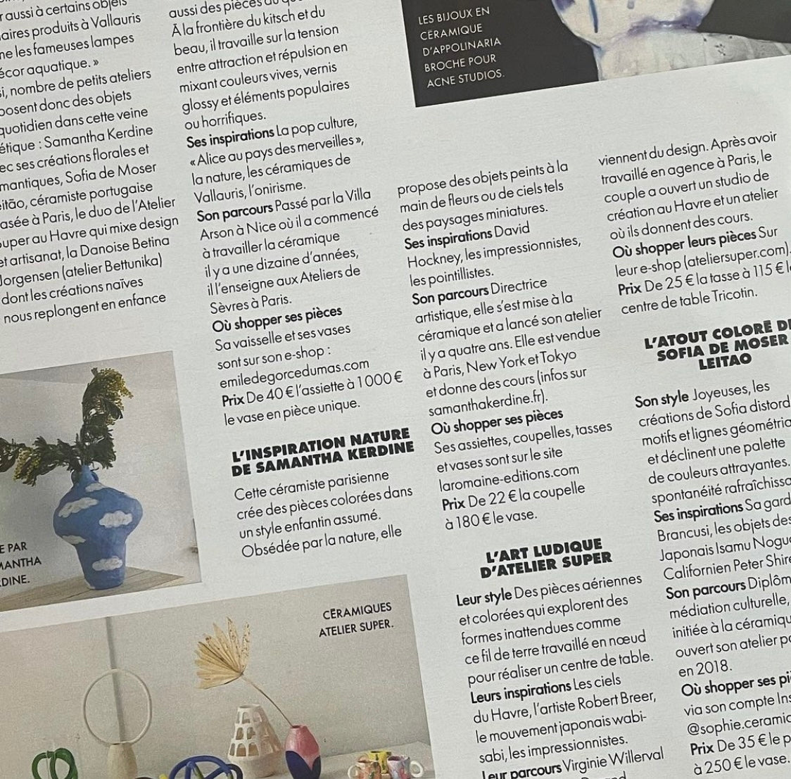 Samantha Kerdine X Pasch Atelier 콜라보 라인을 소개합니다. 세라믹 아티스트 Samantha Kerdine 사만다와 함께한 독점 콜라보 라인. 사만다는 파리를 베이스로 활동하는 프랑스, 파리 출신의 세라믹 아티스트입니다. 2021년 12월에는 파리 여성 의류 브랜드 Rouje 매장에서도 전시와 동시에 그녀의 세라믹 제품들을 만나볼 수 있었는데요, 그녀의 아트웍들이 프랑스 ELLE 매거진에서도 소개가 될 만큼 유럽내에서 주목받는 핫한 세라믹 아티스트로 활동하고 있습니다. 2022년에는 세라믹 의자를 만들기 선보이기 위해서 작업중이라고 하는데요. 앞으로도 사만다의 작품 활동을 파시가 응원합니다. 파시 아뜰리에서 사만다와의 하나뿐인 핸드메이드 콜라보레이션 아트웍 피스들을 보여 드릴 수 있게 되어서 너무 기쁩니다 !