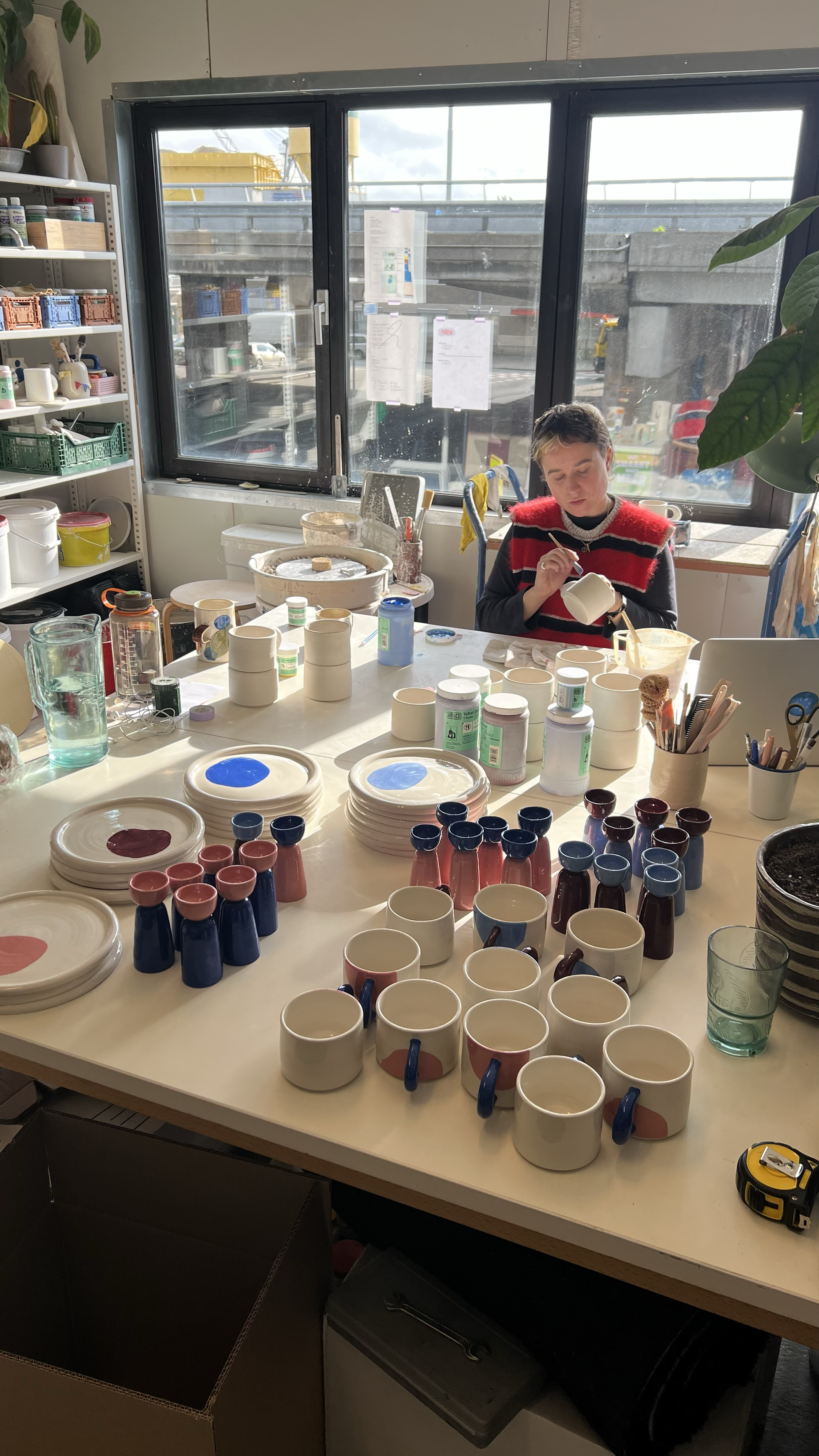 In their studio space they make new ceramics on the wheel and by hand daily,