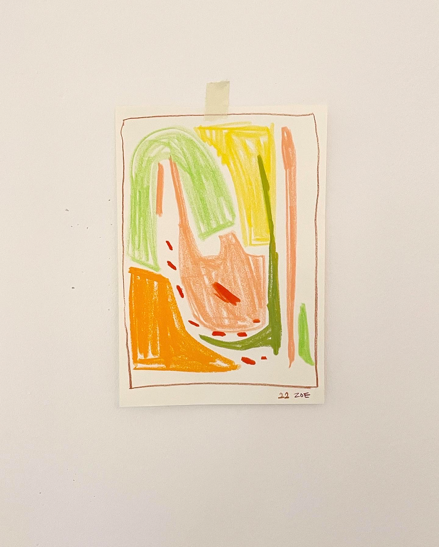 다양한 컬러와 다양한 사이즈로 전시될 작품입니다. 오일 파스텔, 크레용, 아크릴 물감이 사용되었습니다. 50개 한정 아트웍 제품입니다.