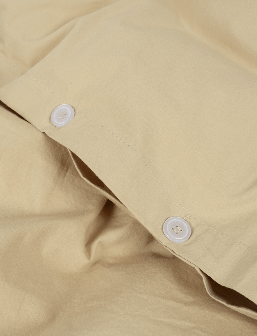 GOTS certified organic bedding in washed cotton percale for a very beautiful understated look and handfeel. Pillow case 60x63 cm with envelope closure and duvet cover 140x200 cm with buttons. The bedding is delivered in a matching fabric bag with tie strings and French seams inside.