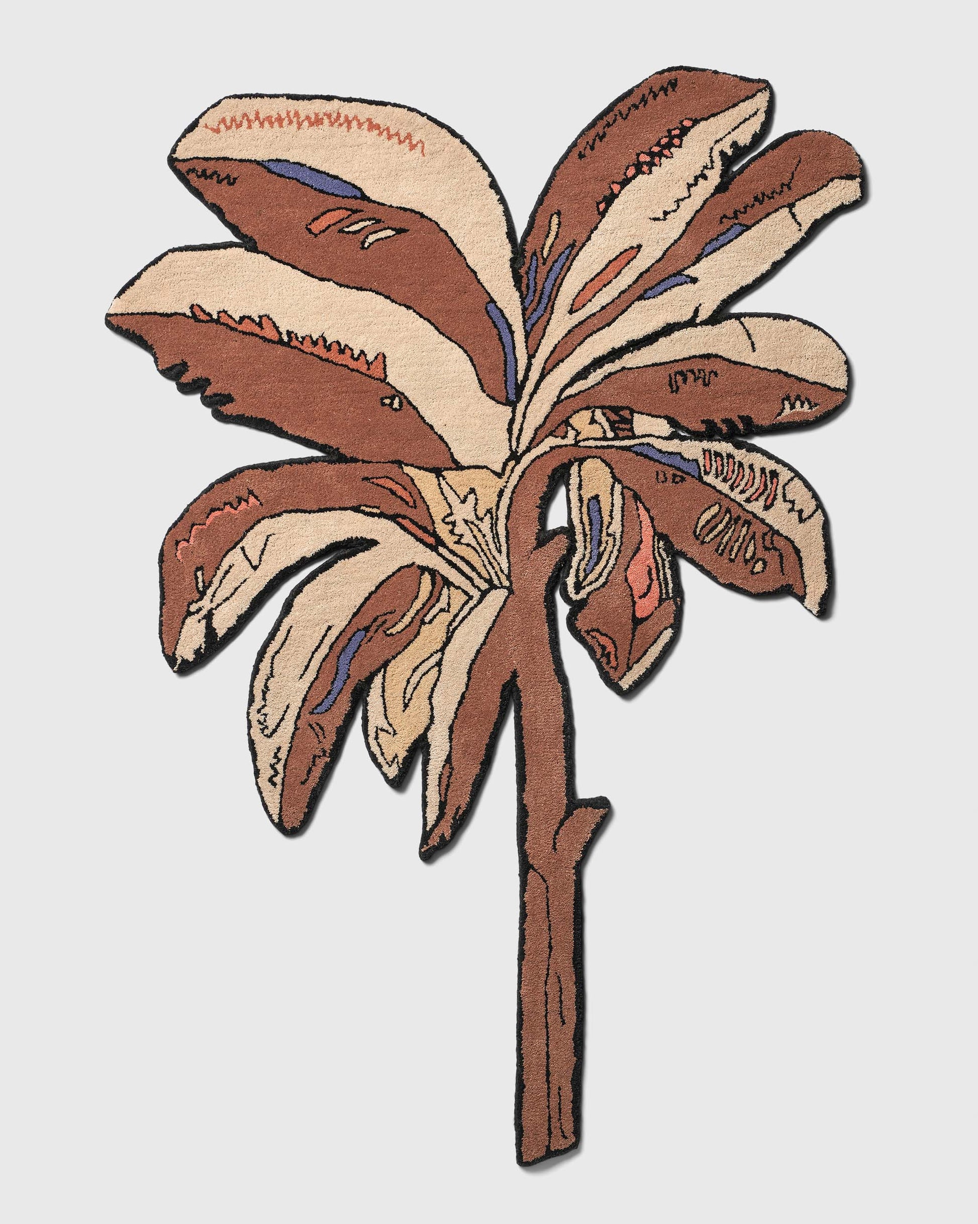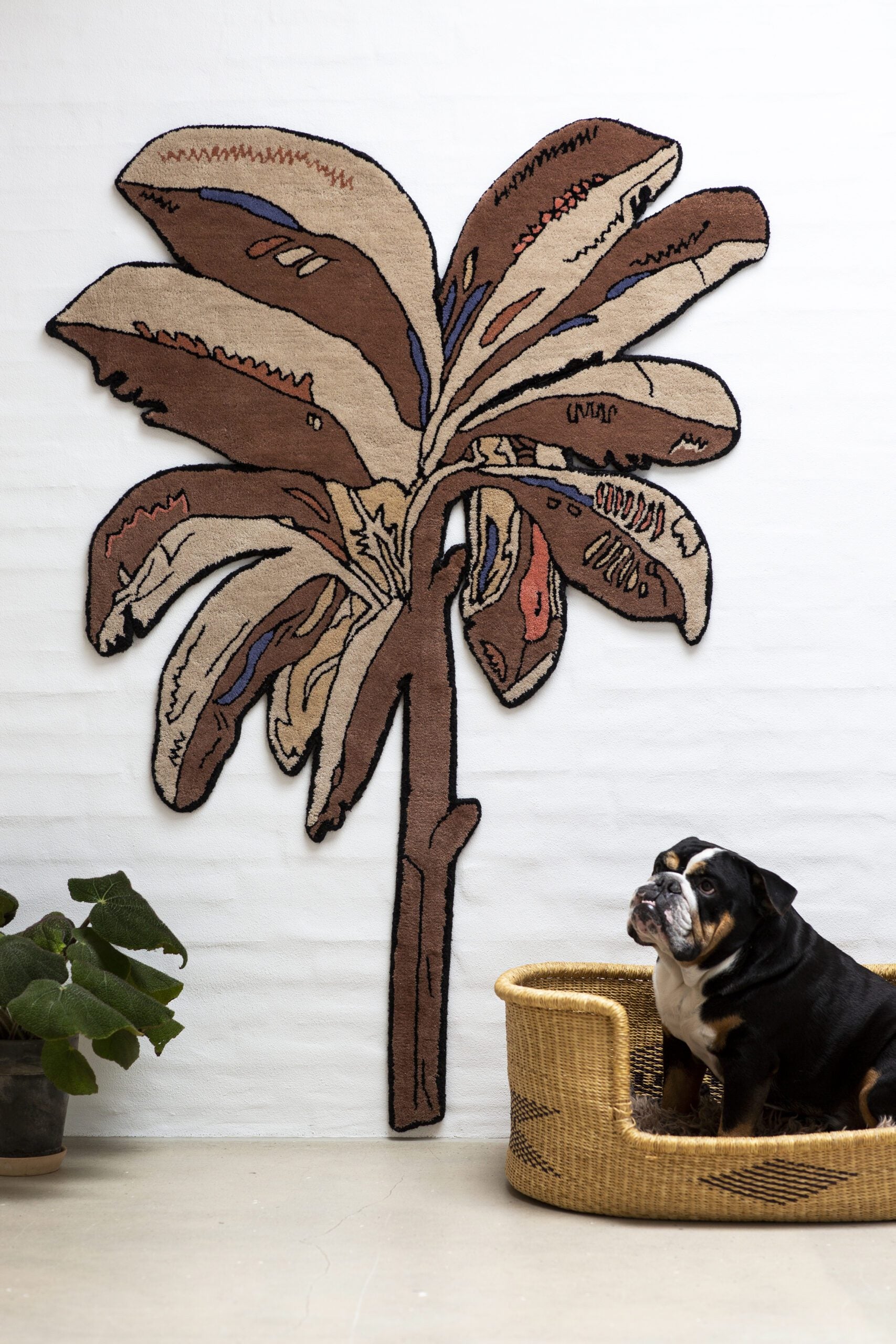 The Bounty rug is hand-tufted in India using 100% wool in elegant brown, beige, and coral shades. The rug has a Tropical vibe - but in subtle, pared-down tones. This hand-tufted rug adds fun and ambience to your home - and maybe it'll make your dream of a vacation. The Bounty rug looks great on the floor in your living room - or you can use it as a show-stopping wall rug. It comes with hangers on the back for easy display.