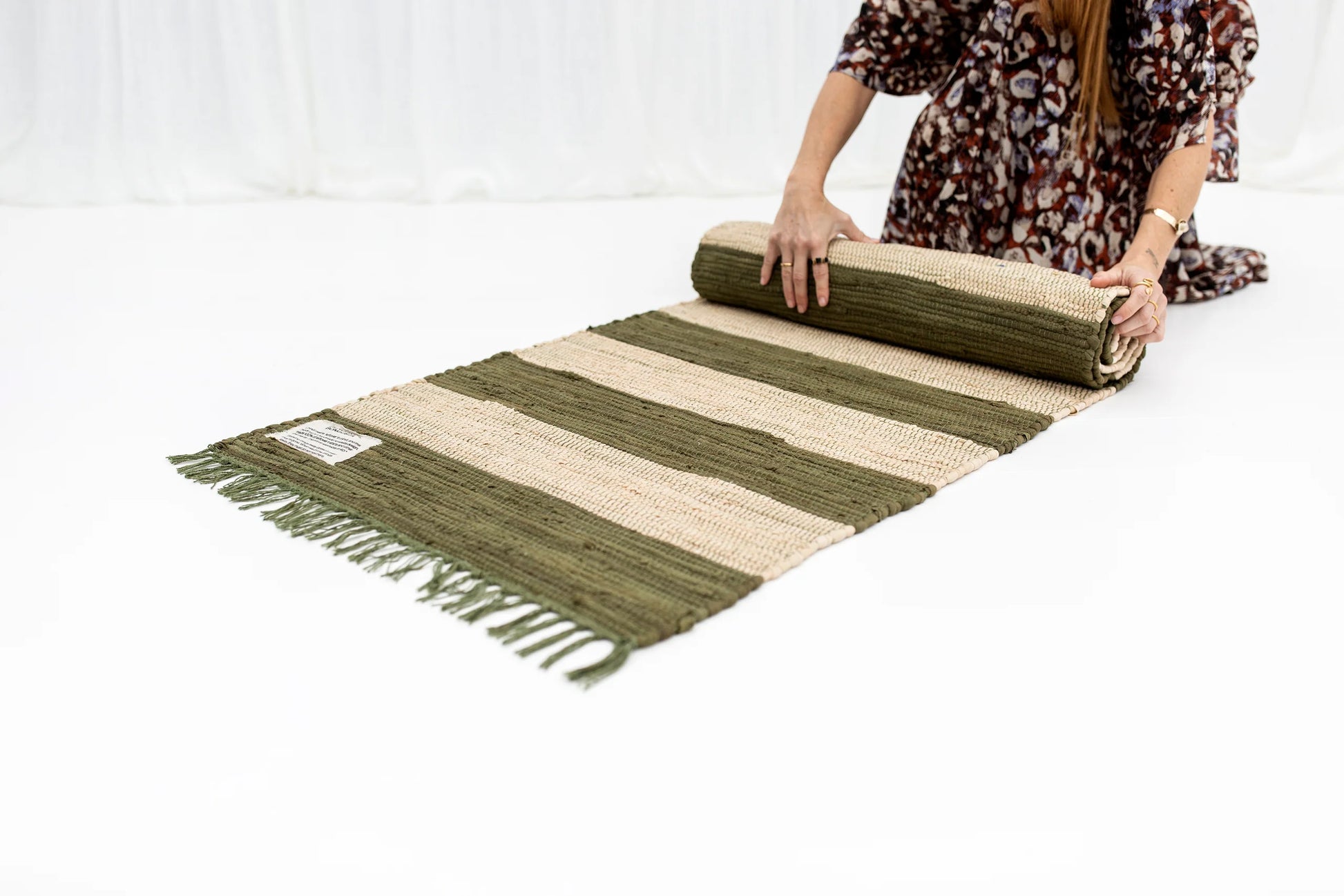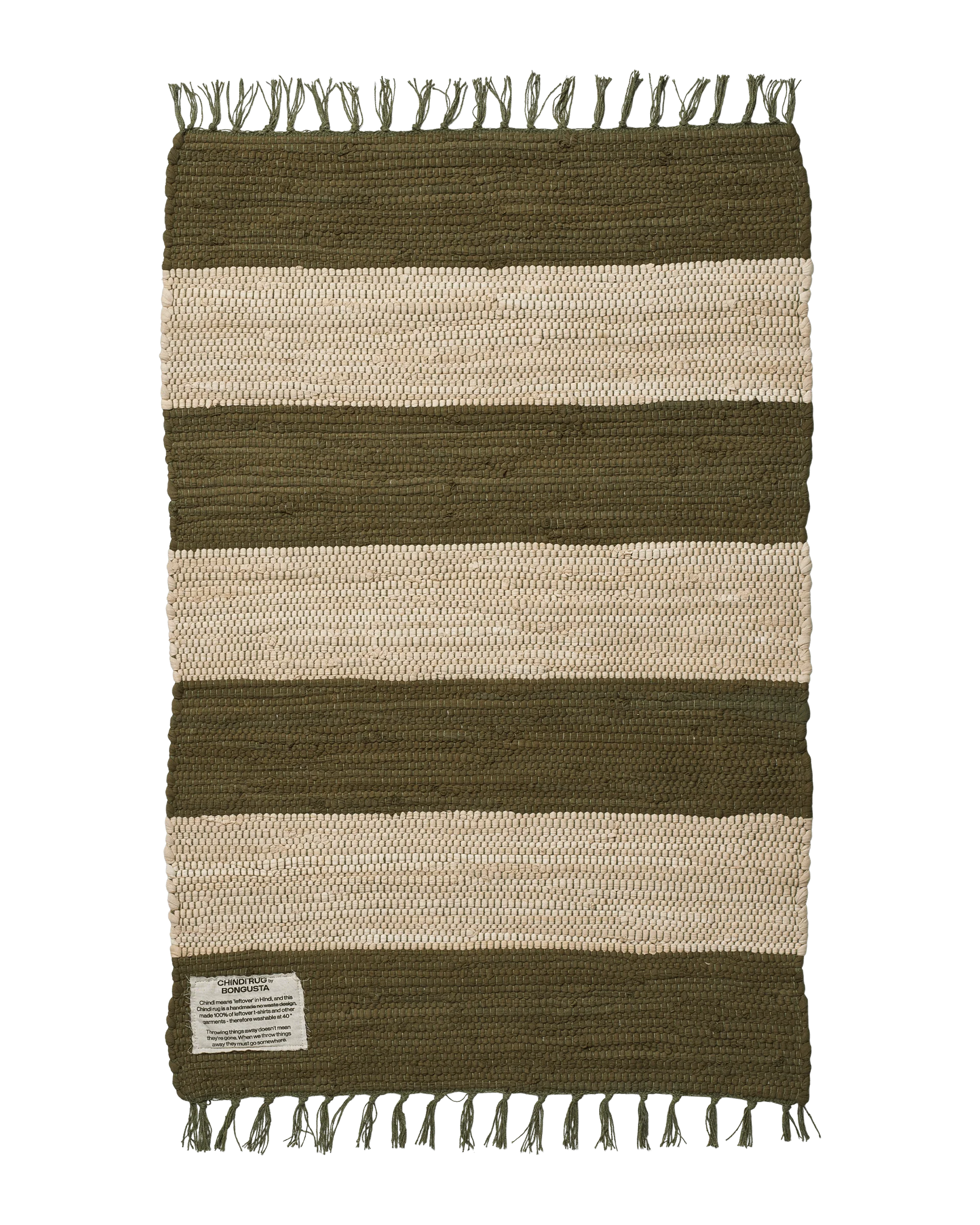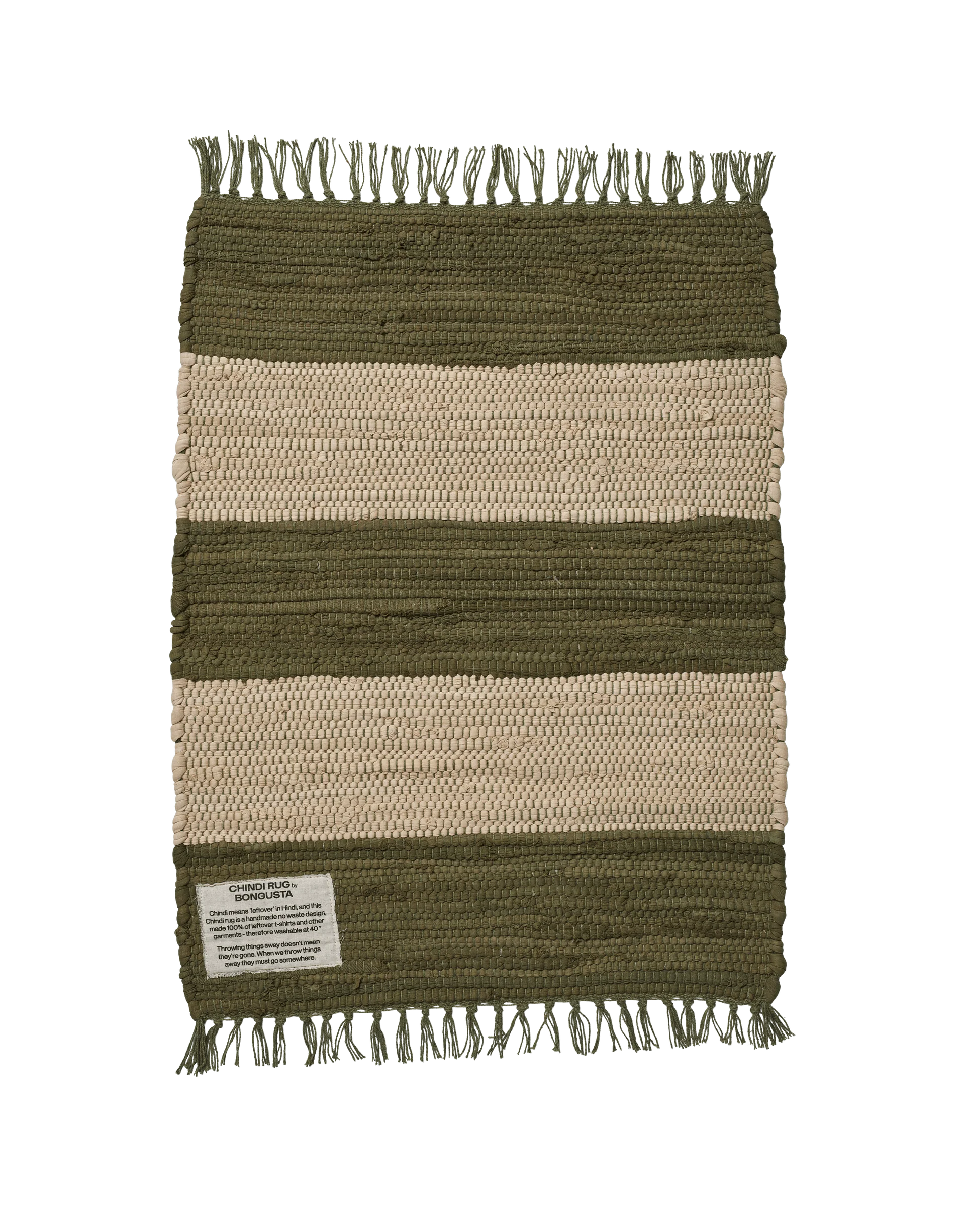 The word 'Chindi' means leftover in hindi. The colourful Chindi rugs are woven by hand from leftover material - primarily cotton - but other fibers may occur due to the nature of leftover fabric. The handcrafted look of the rugs is what we love about them.