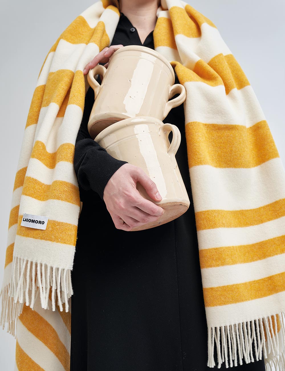 LAGOMORO 라고모로 는 모든 세부 사항을 선별하여 다양한 형태의 단순함으로 담요를 디자인합니다. 연구에는 미드 센추리 시대의 위대한 디자인과 우리 지역의 제조 전통이 포함됩니다. 전 세계 다양한 문화의 민속과 패턴에서 영감을 얻어 이를 단순화된 언어로 재해석합니다.